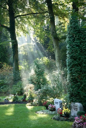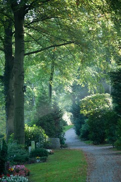 Wahlgräber im alten Teil liegen im Mittelfeld des Friedhofs und wurden in den alten Baumbestand integriert.